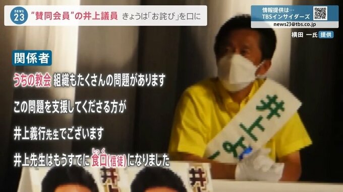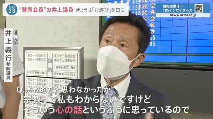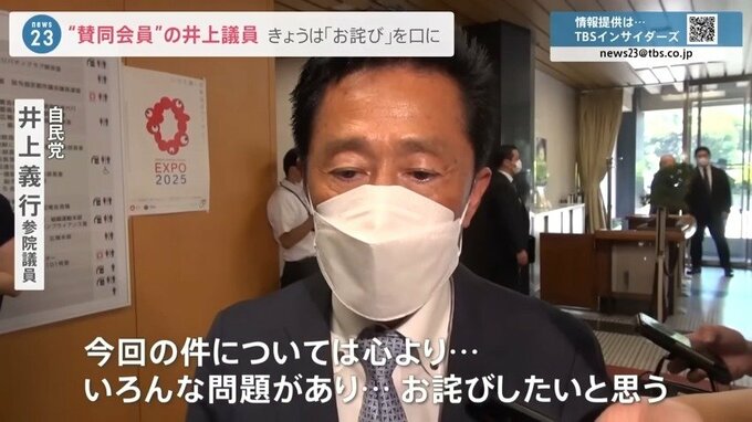 旧統一教会の「賛同会員」の自民党・井上義行参院議員。「お詫び」を口にしました。