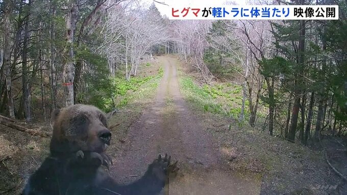 きのう、北海道根室市の林道で、突然現れたヒグマが軽トラックを襲いました。その瞬間の映像です。この映像はきのう午後1時ごろ、北海道根室市の林道を走る軽トラックのドライブレコーダーの映像です。画面の左、1…