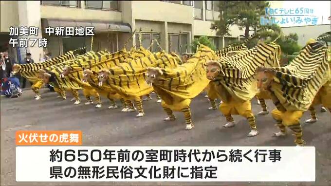 加美町の中新田地区で行われた「火伏せの虎舞」は、およそ650年前の室町時代から続く行事で、県の無形民俗文化財に指定されています。