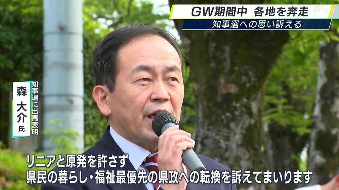 また、先週出馬を表明したばかりの共産党静岡県委員長・森大介氏は静岡市で演説しました。