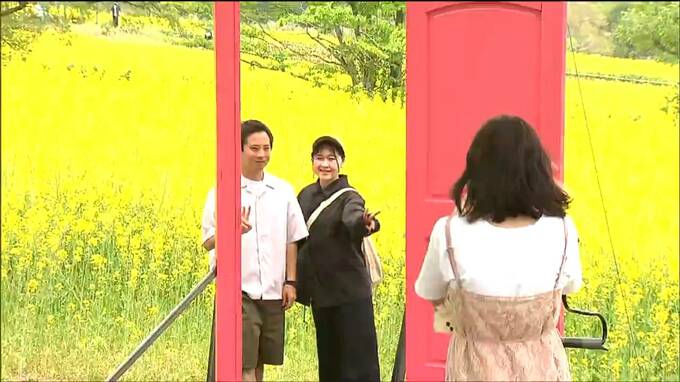 また、およそ300万本の菜の花も見ごろを迎え、訪れた人たちは、鮮やかな景色を写真に収めたりしながら散策していました。菜の花は、ゴールデンウイーク期間中、ビオラは、5月いっぱい楽しむことができるということです