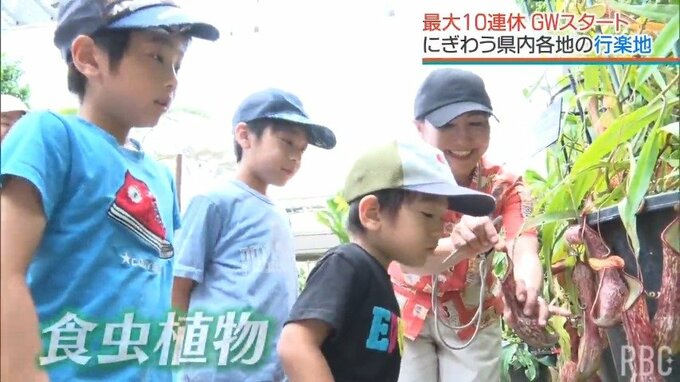 ここでは、珍しい食虫植物に子どもたちが興味津々!