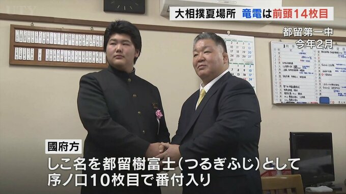 また、今年都留第一中学校を卒業して竜電と同じ高田川部屋に入門した國府方は、しこ名を「都留樹富士」として序の口10枚目で初めて番付に載りました。
