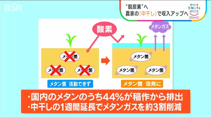 石田さんは去年のコメづくりで田んぼの中干し期間を1週間延長しました。それで得られたのが…