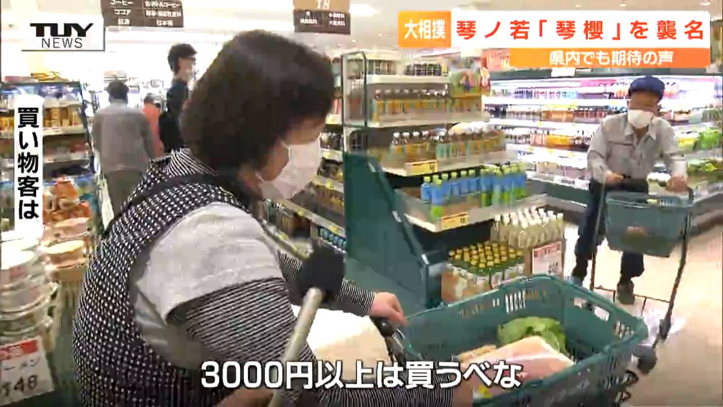買い物客「3000円以上ですね、タオル貰えるんで。8月に尾花沢場所があるので楽しみにしています」