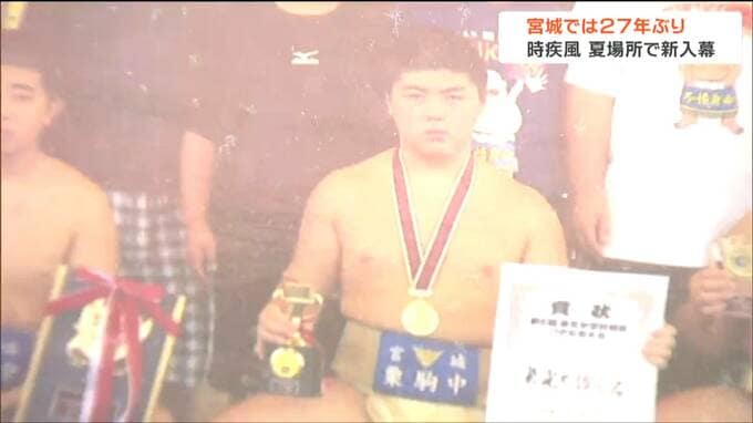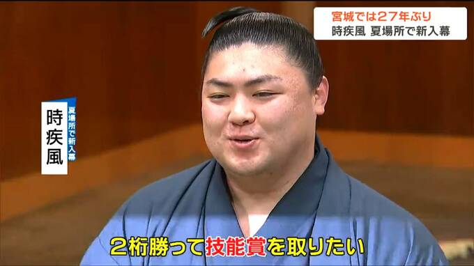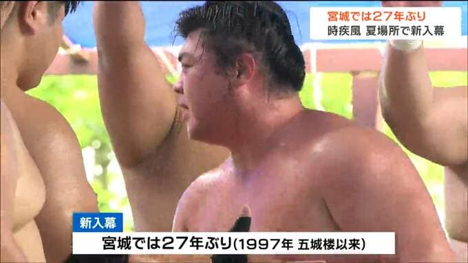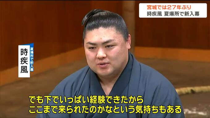 時疾風は宮城県栗原市出身。時津風部屋に入門後、新十両に昇進、3月の春場所で勝ち越しを決め、5月・夏場所の新入幕が決まりました。宮城県出身力士としては1997年の五城楼以来、27年ぶりの新入幕となります。