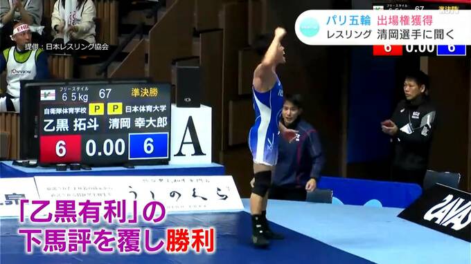 その“再び”の代表選考=「全日本選手権」準決勝で乙黒選手と対戦した清岡選手は、「日本レスリング界のエース・乙黒有利」という下馬評を覆し、乙黒選手との大接戦を制すと…
