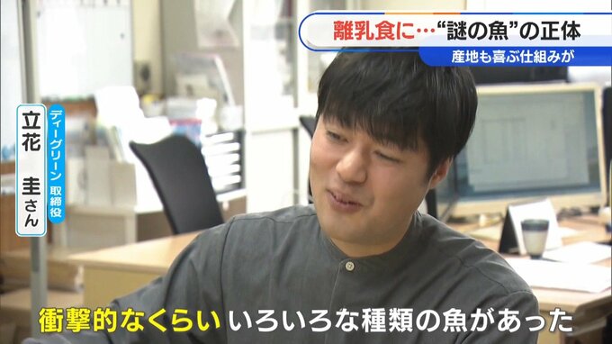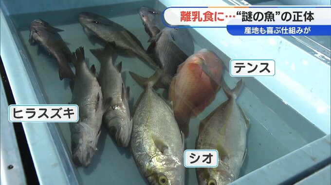 この日も、地元のベテラン仲買人が、水揚げの状況に応じて魚を仕入れていきます。今回は、一般的なスズキよりも平べったい冬が旬のヒラスズキ、真っ赤な見た目が特徴のテンス、カンパチの幼魚のシオなどを仕入れました。これらの魚は、知名度の低さや不安定な漁獲量などから需要が少なく、時には捨てられることもあるのだとか。立花さんは「おいしい魚なので食べてほしい」との思いで、離乳食への利用を考えたそうです。