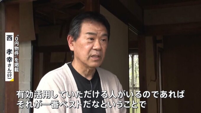 「(解体費用などは)320~30万円とか350万円とか。こんな負の財産をいつまでも持って子どもたちに引き継いでいくのも忍びないし、有効活用していただける人がいるのであれば、それが一番ベストだなということで」