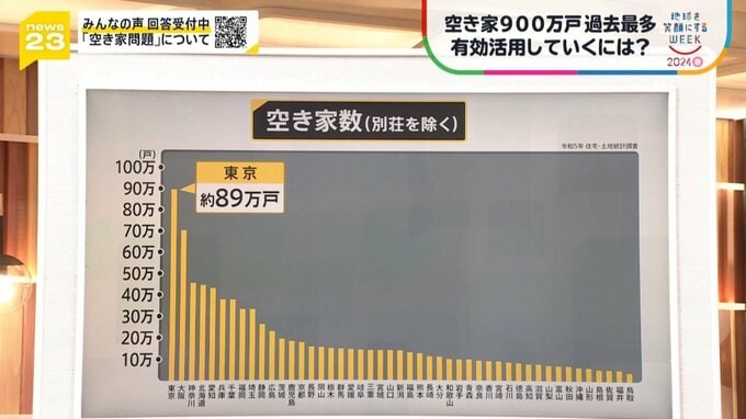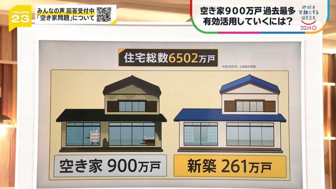 空き家が増え続ける問題ですが、実は住宅の数で見てみると、今、全国に6500万戸あるうちの900万戸が空き家です。