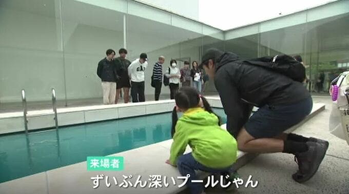 地震の影響で閉鎖が続いていた金沢21世紀美術館の人気作品「スイミング・プール」。プールを地上と地下の両方から鑑賞できる作品で、美術館を代表する人気スポットです。1日から地上部分のみ無料で開放され、多くの来場者でにぎわいました。