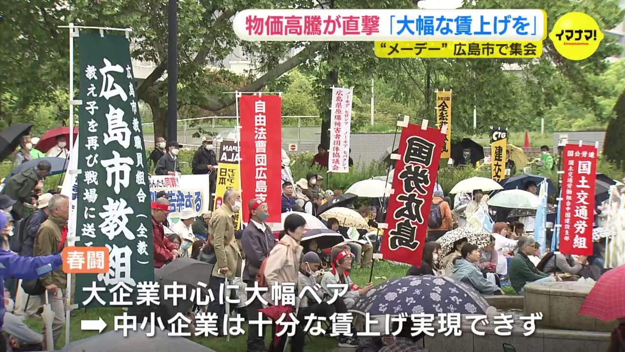 メーデーの5月1日、広島市でも労働者の集会が開かれました。歴史的な物価高騰が生活を直撃する中、「大幅な賃上げ」を求める声があがりました。