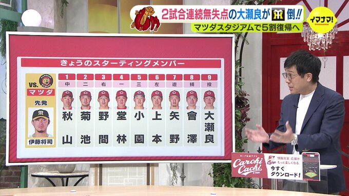 そうなんです。また、チームが1つになりますから。大瀬良投手の代名詞は “カットボール” なんですが、カットボールだけじゃなくて、いろんな球があるぞとバランスよくやっていきたいと話していました。しかも、きょうは大瀬良・會澤のバッテリーです。もう3連覇のにおいしかしないじゃないですか。早い段階で点を取って、ぜひ勝利をおさめていただきたいと思います。