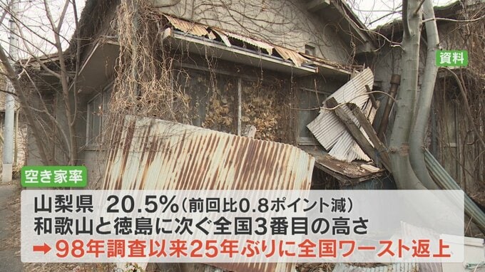 すべての住宅に占める空き家の割合が山梨県は20.5%で前回調査から若干改善し、25年ぶりに全国ワーストを返上しました。