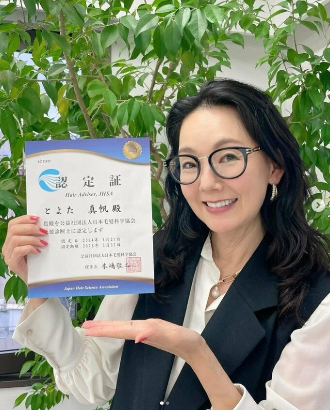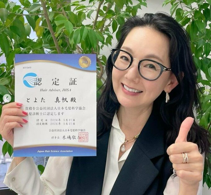 1日、俳優のとよた真帆さんが自身のインスタグラムを更新し、「毛髪診断士」の資格を取得したことを報告しました。