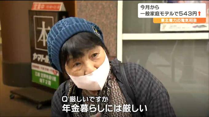5月の東北電力の電気料金は、一般家庭のモデルで4月より543円値上がりします。街の人たちの受け止めは…。