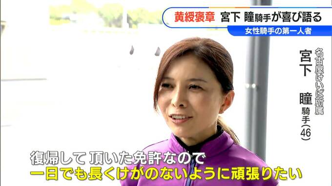 先日、女性騎手として初めて黄綬褒章を受章した、名古屋けいば所属の宮下瞳さん(46)。1日もレースで騎乗し見事勝利を飾りました。