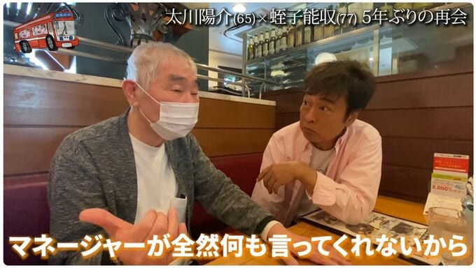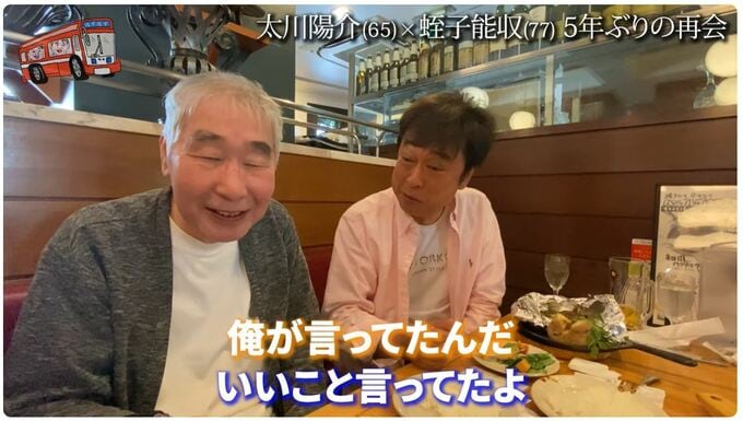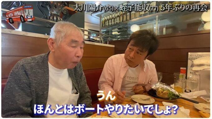 30日、タレントの太川陽介さんの公式YouTubeチャンネルに、漫画家・タレントの蛭子能収さんが登場しました。
