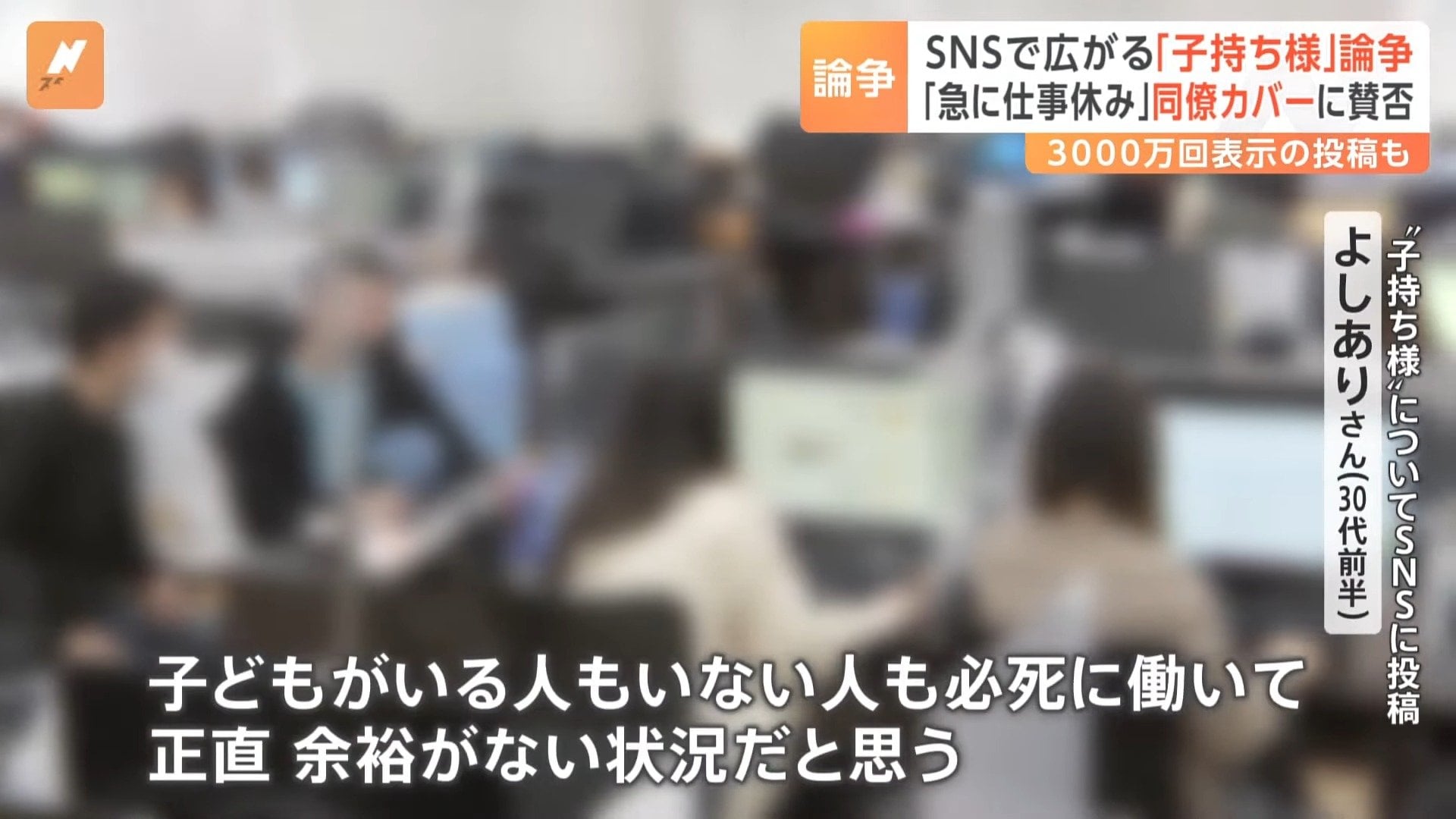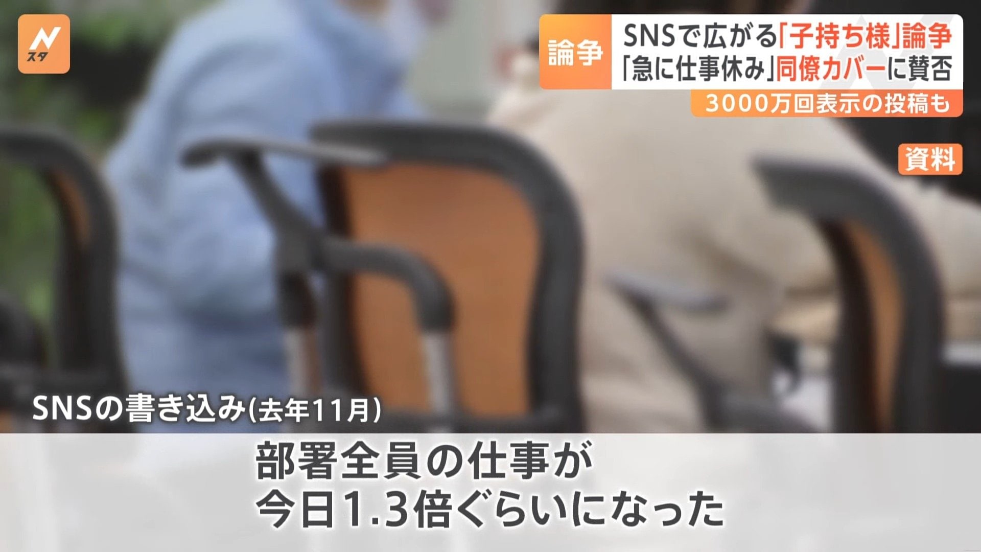 投稿の表示回数は、3000万回以上。今、この「子持ち様」をめぐり、意見が割れる事態となっています。