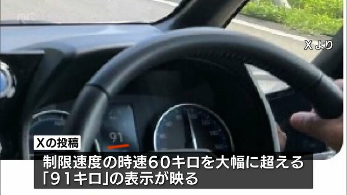 そこには、制限速度の時速60キロを大幅に超える「91キロ」の表示が映っていて、武井氏は、十数分後に投稿を削除しましたが、画像はSNSで拡散されています。
