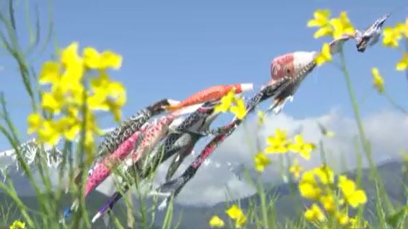 安曇野市では残雪の北アルプスと4万本の菜の花、そして鯉のぼりの競演を楽しむことができます。残雪の北アルプスと一面の菜の花畑。安曇野市の直売所「ほりがね物産センター」の隣にある60アールの畑では、およそ4…