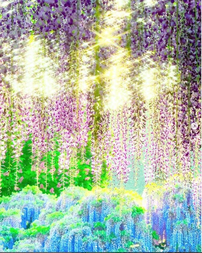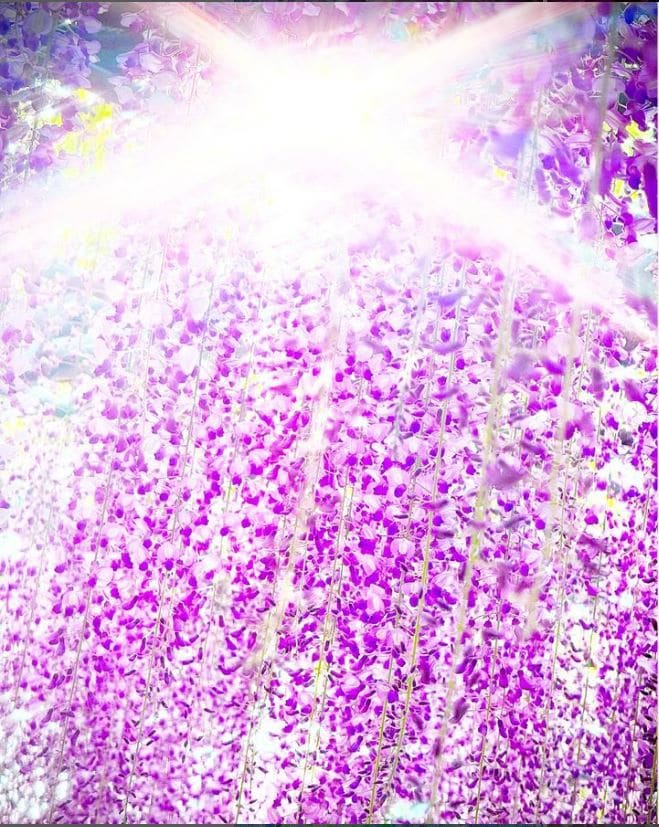 4月29日、写真家で映画監督の蜷川実花さんがInstagramで自身が撮影した「藤の花」の写真を公開しました。投稿された写真には、鮮やかな藤の花がシャワーのように降り注ぐ様子が写っています。