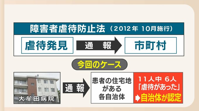 病院からの通報を受け自治体が調査した結果、虐待を受けた疑いがあった入院患者11人のうち6人については性的な虐待を受けていたことが認定されました。1人は虐待の認定はされず、残る4人について現在も調査が進められています。