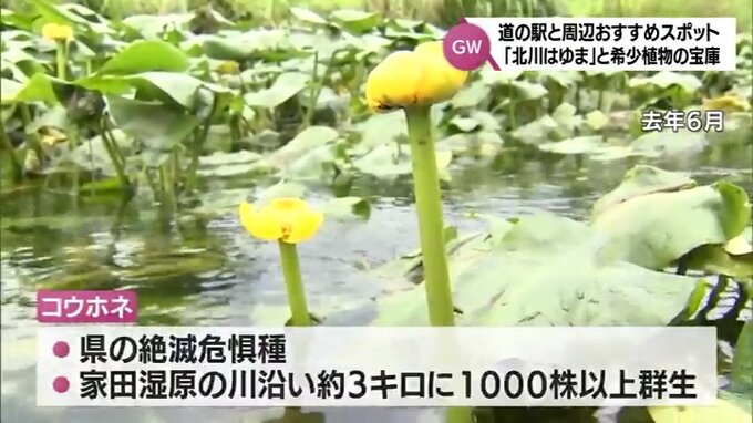 そして、今の時期から見ごろを迎えるのが、北川湿原が国内で一番の群生地とされるスイレン科の植物「コウホネ」です。