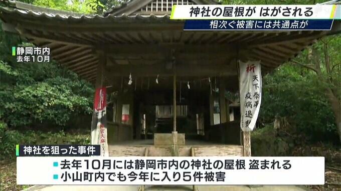 静岡県小山町で神社の屋根が剥がされ、盗まれる被害がありました。全国で相次ぐ神社を狙った盗難被害には、共通点がありました。