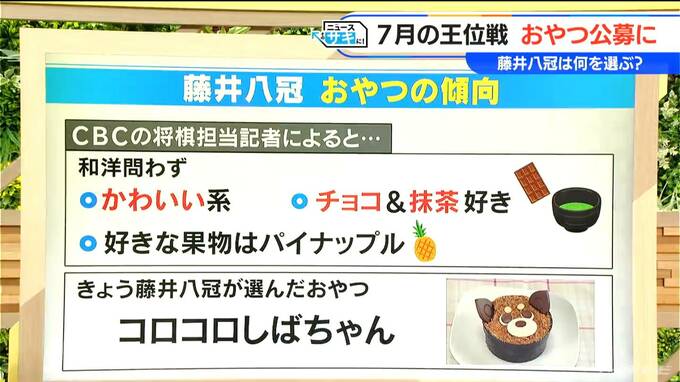 CBCの将棋担当記者に聞きました。色々と傾向があるみたいなんです。藤井八冠が今までに選んだ「おやつ」は和洋どちらかが多いということはないそうで、共通しているのは「かわいい系」であること。今回も選んだのは「コロコロしばちゃん」で「かわいい系」でした。