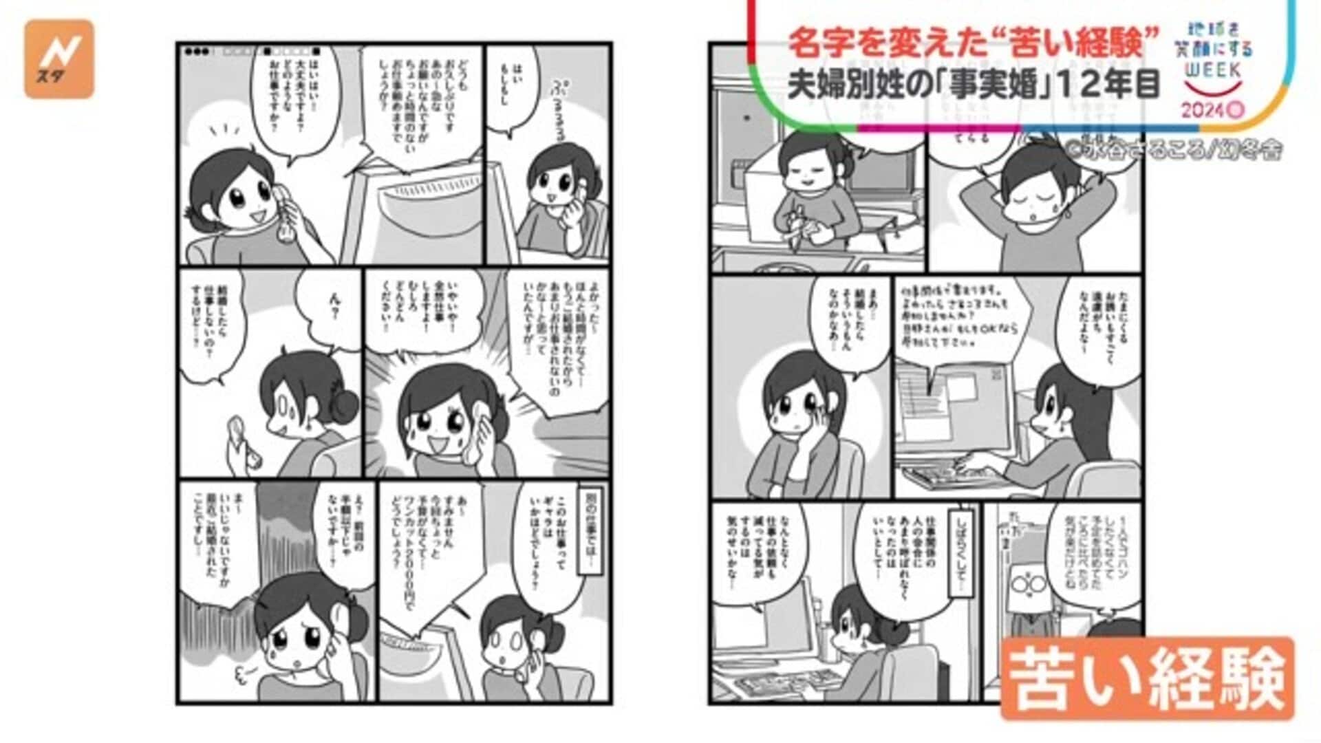 自らの経験を描き、選択的夫婦別姓の必要性を問いかける漫画があります。自分の名字で生きようと「事実婚」を選んだ漫画家の女性とその夫に取材しました。