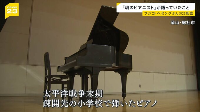 太平洋戦争末期、疎開先の小学校でピアノを弾いていたといいます。