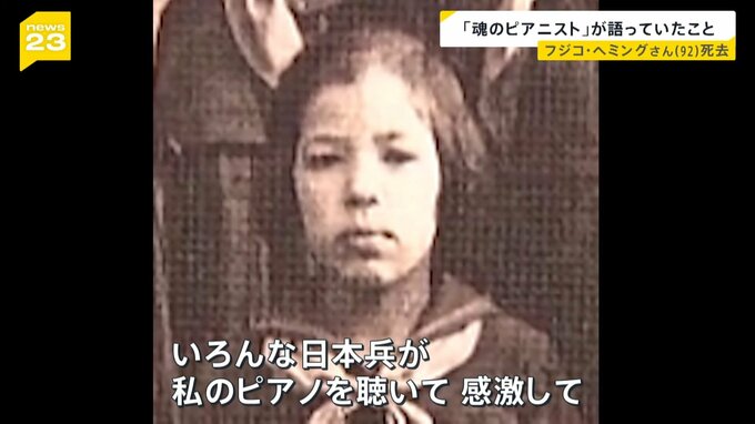 「いろんな日本兵が私のピアノを聴いて感激して、ある方は(教室に)入ってきて黒板に『愛しのフジちゃん、ピアノが素晴らしい』と白墨で書いてくれたのを思い出す」