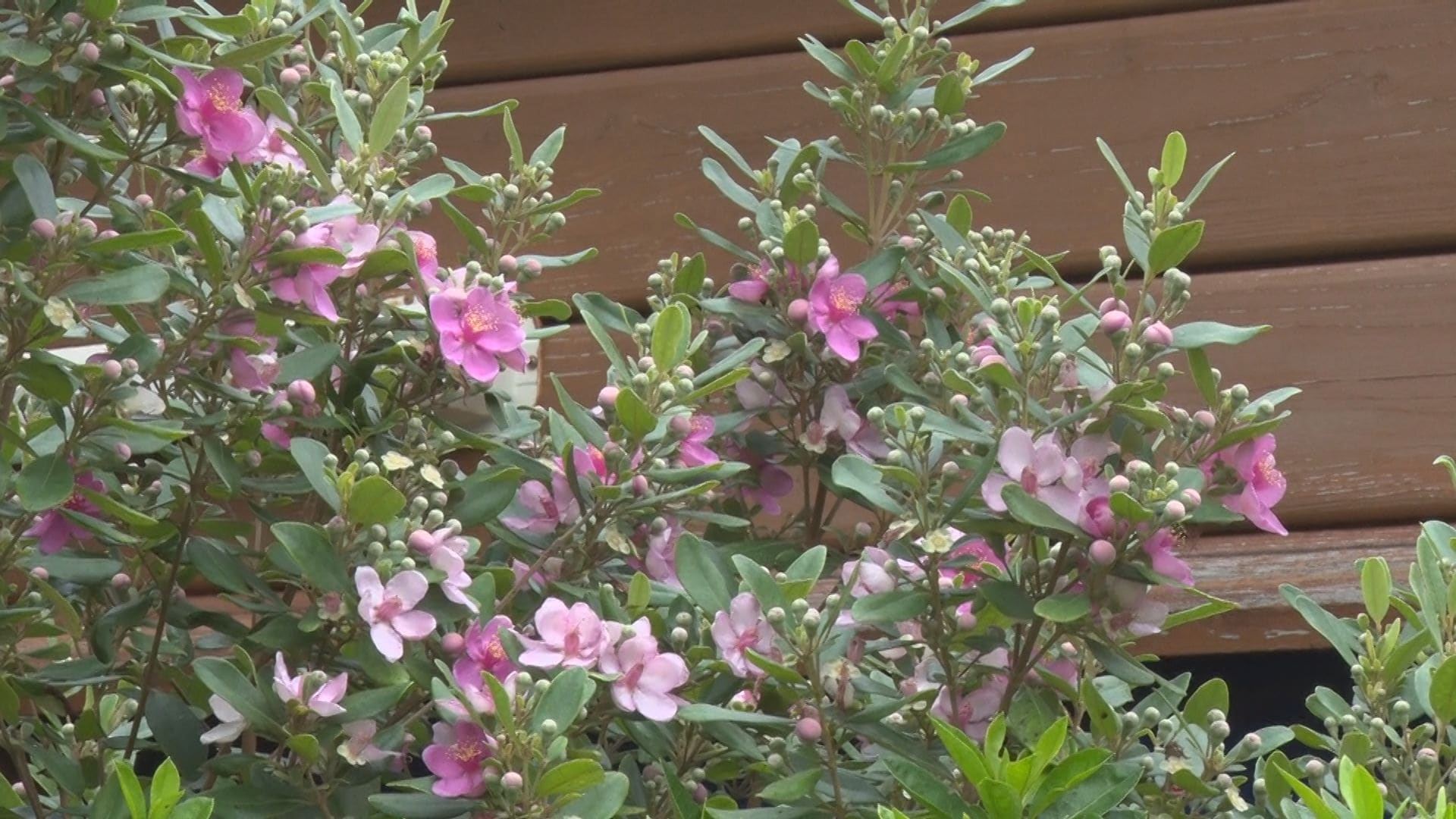 東南アジア原産の「テンニンカ」がうるま市の民家で淡いピンク色の花を咲かせ、見頃となっています。