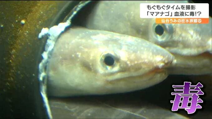 仙台うみの杜水族館の生き物たちをシリーズで紹介、5回目は「マアナゴ」です。いつも筒の中で身を寄せているマアナゴ。今回は元気よく泳ぎまわりご飯を食べる珍しい姿を撮影しました。そして、血液に毒があるとい…