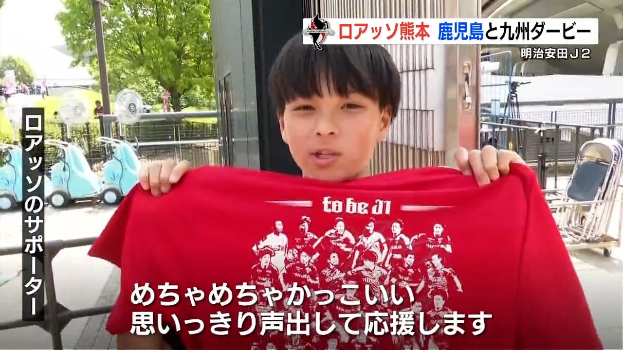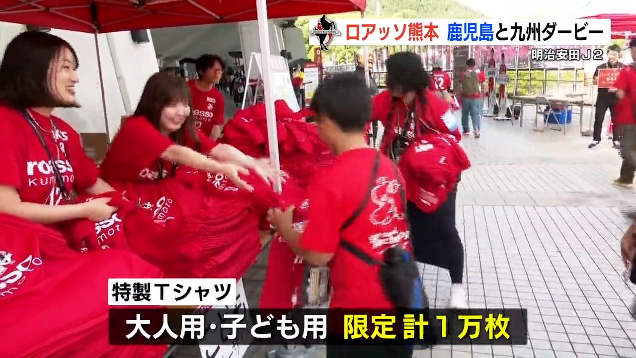 チームカラーのTシャツには、ロアッソの選手たちとJ1昇格に向けた思いがプリントされ、大人用と子ども用、あわせて限定1万枚が配布されます。