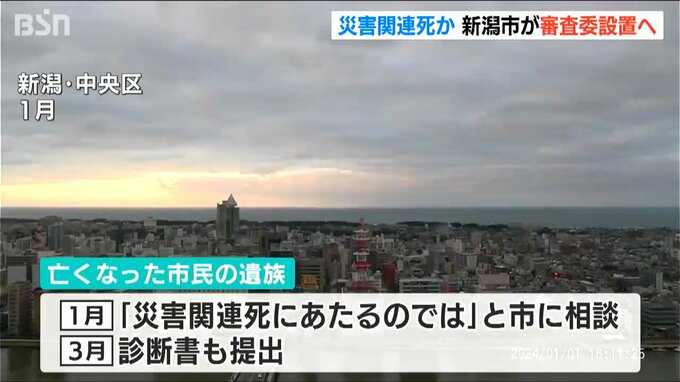 能登半島地震後に亡くなった新潟市民1人が災害関連死に当たるかどうか判断するため、新潟市が審査委員会の設置を決めたことが分かりました。