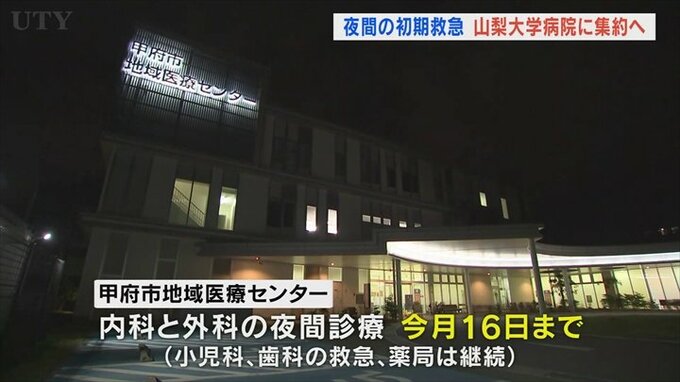 これに伴い甲府市の地域医療センターで行っていた内科と外科の夜間診療は前日の16日で終了します。