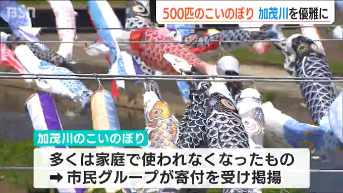 多くは子どもが大きくなって家庭で使われなくなったもので、加茂市の市民グループが寄付を受け毎年、この時期に河川敷に掲げています。