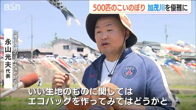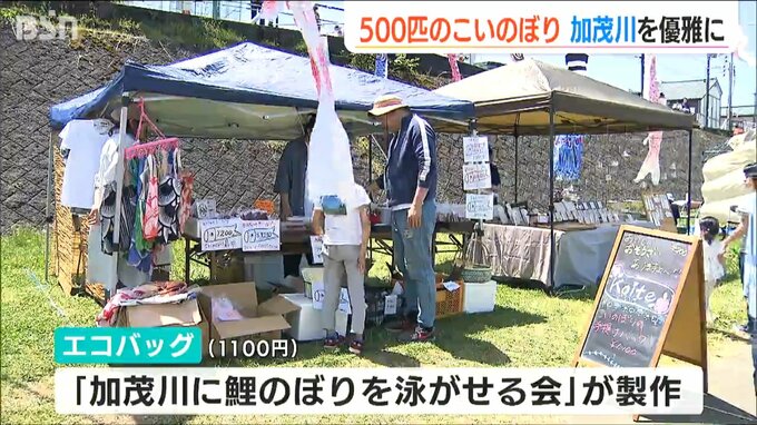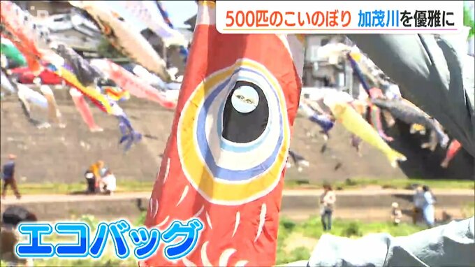 【加茂川に鯉のぼりを泳がせる会 永山光夫 代表】「毎年500匹くらいこいのぼりをかけるが、そのうちの大体100匹くらいが切れたり破れたりして使えなくなって廃棄していた中で、いい生地のものに関してはエコバッグを作ってみてはどうかと」