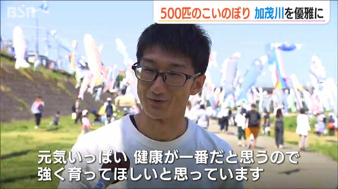 こゴールデンウイークも後半、3日も晴天に恵まれました。新潟県 加茂市の河川敷では5日のこどもの日を前におよそ500匹のこいのぼりが泳いでいます。