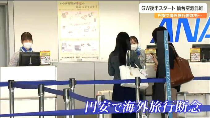 ゴールデンウイーク後半の4連休が3日から始まり、仙台空港は帰省や旅行に向かう人などで混雑しました。旅行客の一部からは「海外旅行は断念した」という声が聞かれるなど円安の影響が見られました。3日からゴール…