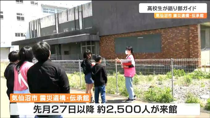 高校生らは震災の教訓を伝えるため、これまでも不定期で語り部活動を行ってきました。震災遺構・伝承館には、大型連休が始まった4月27日以降、およそ2500人が訪れているということです。