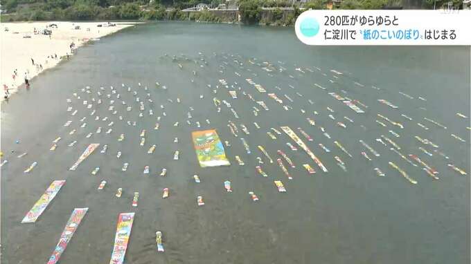 高知県いの町では初夏の風物詩・「紙のこいのぼり」が3日から始まり、個性豊かなこいのぼり280匹が仁淀川を彩っています。このイベントは、清流・仁淀川やいの町の紙文化をPRしようと1995年から始まり、今年で28回…