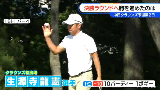 予選トップには3日、10バーディ1ボギーの猛チャージで、トータル10アンダーとした、クラウンズ初出場の生源寺龍憲(しょうげんじ たつのり)選手が立っています。