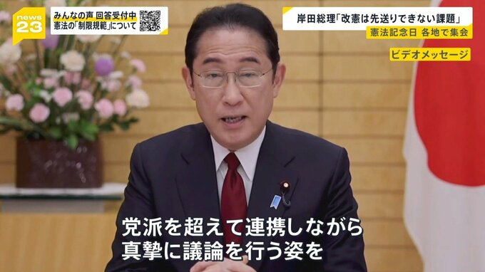 憲法記念日の3日、各地で集会が開かれました。岸田総理は憲法改正について、「先送りできない重要な課題だ」と訴えました。