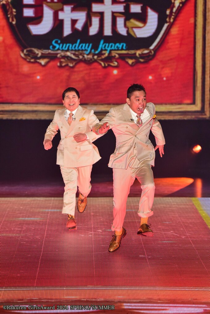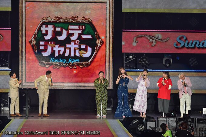 爆笑問題の田中裕二さん、太田光さんが、5月3日に国立代々木競技場第一体育館で行われた「Rakuten GirlsAward 2024 SPRING/SUMMER」に藤田ニコルさん、やす子さん、丸山礼さん、松村沙友理さん、泉房穂さん、宮内ジャーナリストの「サンデージャポン」メンバーとともに登場しました。
