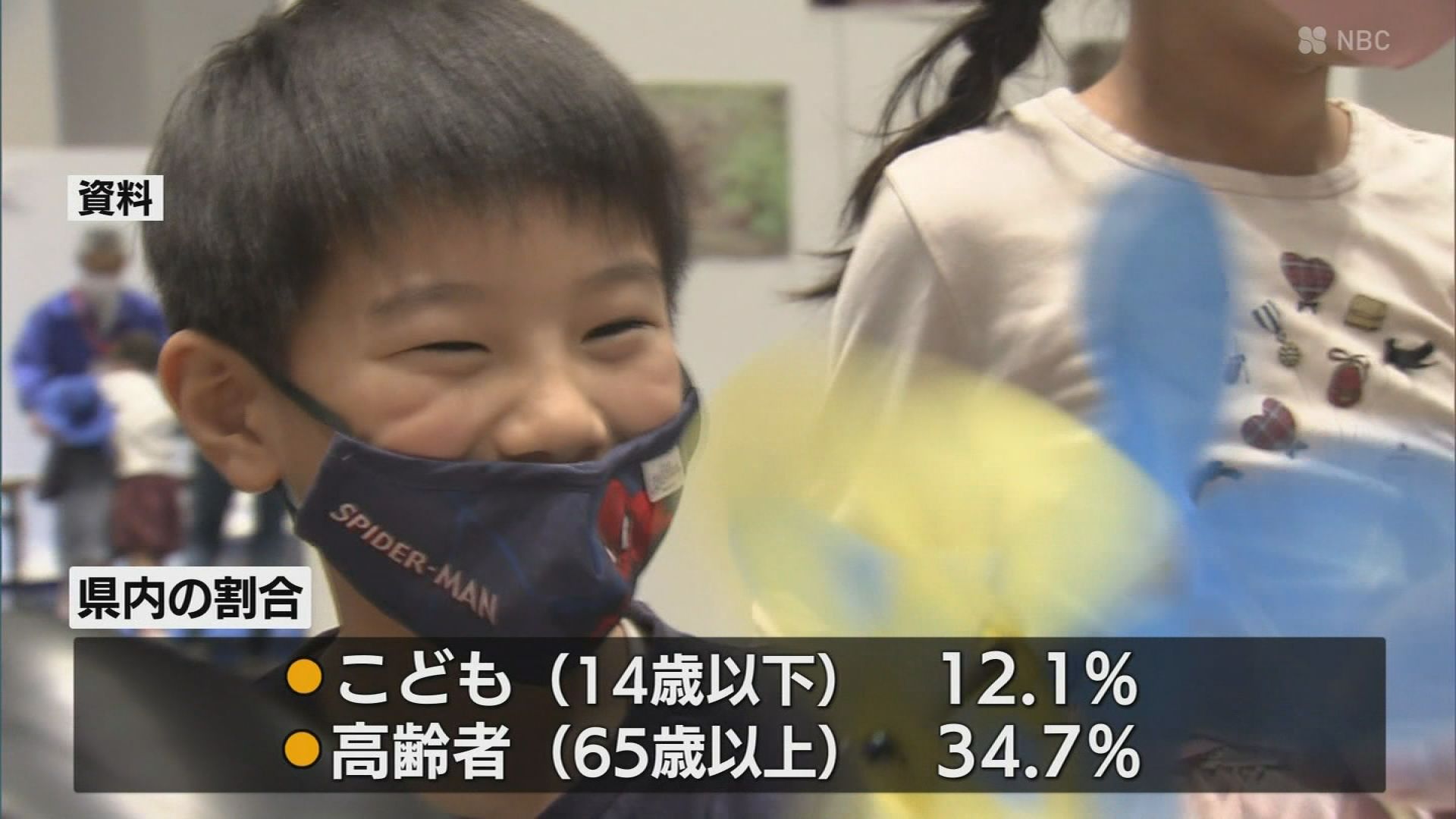 また県内の総人口に占めるこどもの割合は12・1%、65歳以上の人の割合は34・7%で、少子高齢化が進む県内の現状を示す結果となりました。