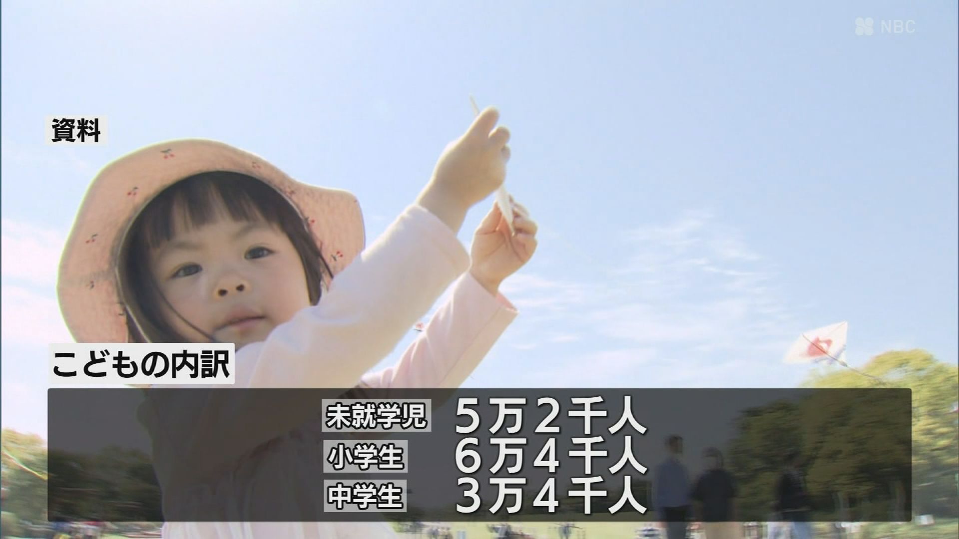 内訳を見ると、0歳から5歳までの未就学児がおよそ5万2千人。6歳から11歳までの小学生がおよそ6万4千人。12歳から14歳までの中学生がおよそ3万4千人で年齢が低くなるほど少なくなる傾向となっています