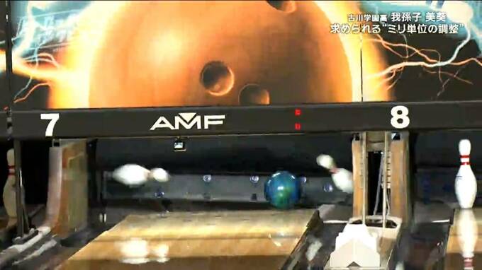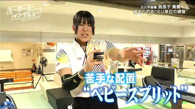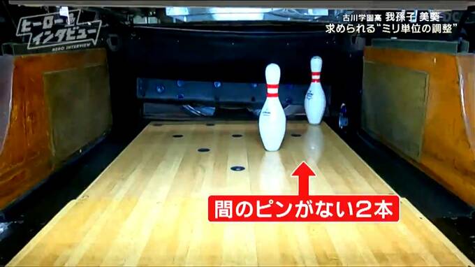 思わずガッツポーズの我孫子選手、ボウリングは奥深いものだと話します。